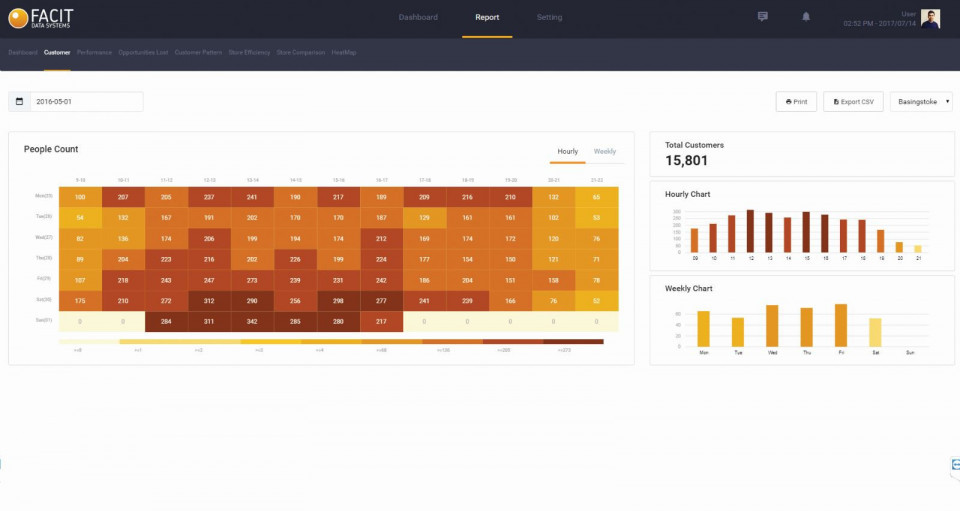 La cámara de conteo de personas bidireccional Wisenet XND 6080/FPC ofrece la oportunidad de dimensionar la eficiencia de la tienda comparando la afluencia de clientes con las ventas reales, ayudando además a identificar los días, horas y épocas de mayor afluencia, para gestionar los momentos de mayor y menor flujo de clientes en las cajas de pago.